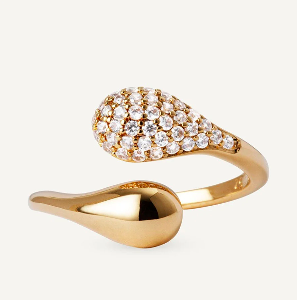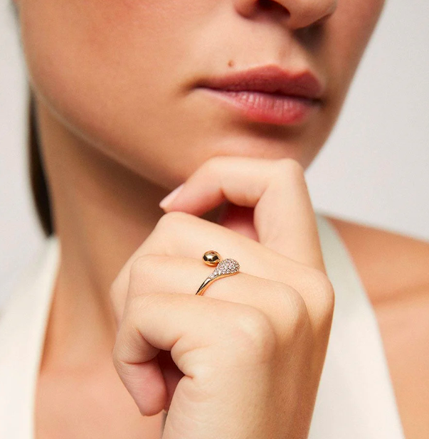 El anillo Cascade de la colección Elegance, baño de oro 18kt, es ajustable y está disponible en dos tallas. Ofrecemos las tallas 12-14, con un diámetro interior de 16,5 mm a 17,2 mm, y las tallas 16-18, con un diámetro de 17,8 mm a 18,4 mm. Su circonita añade un toque de elegancia, haciendo de este anillo el complemento perfecto para cualquier ocasión.