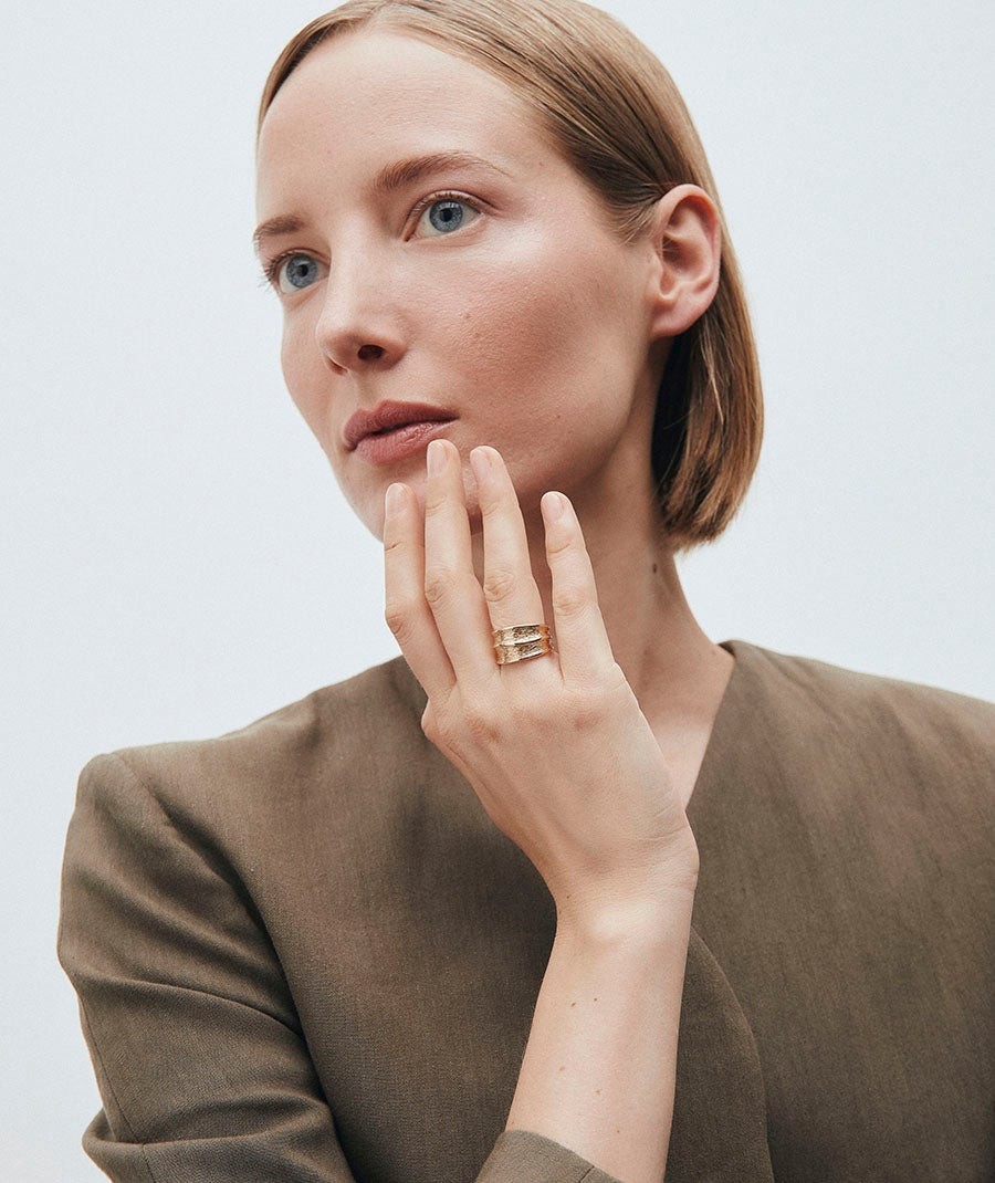 Anillo Curve bañado con una gruesa capa de oro macizo de 18 kt, lo que garantiza una mayor durabilidad.