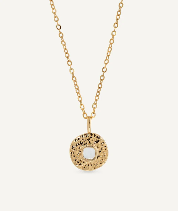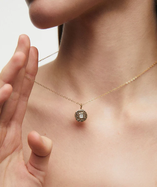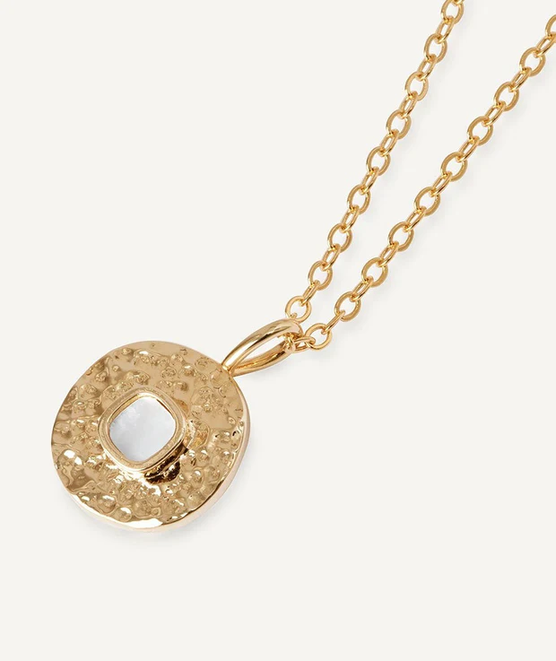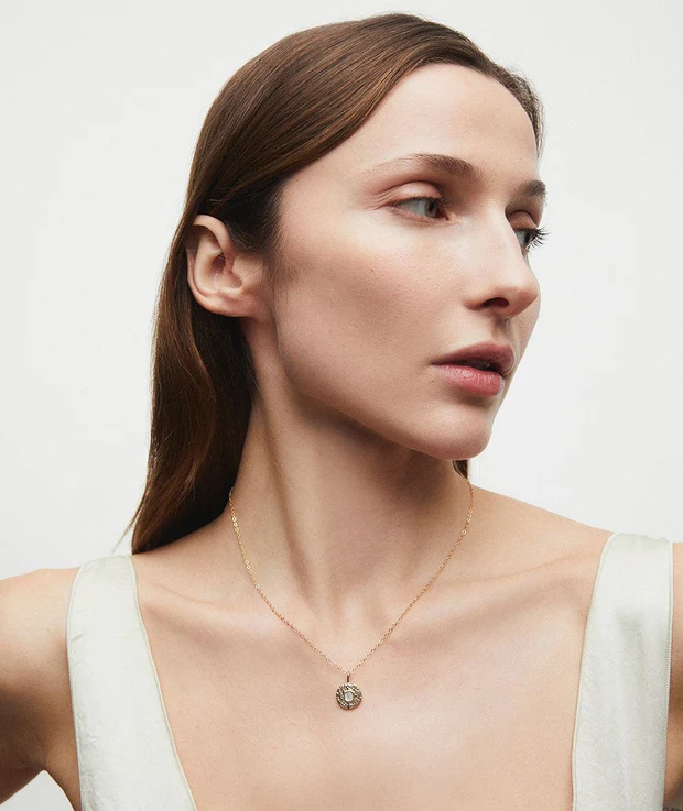 Colgante Gleam, bañado en oro de 18 kt, con Madreperla. Tiene unas dimensiones de 12,4 x 1,6 mm y una cadena ajustable de 38 cm + 6 cm. De la colección Elementales, un recordatorio de lo esencial, con diseños pensados para detener el tiempo y crear una conexión emocional en cada detalle.