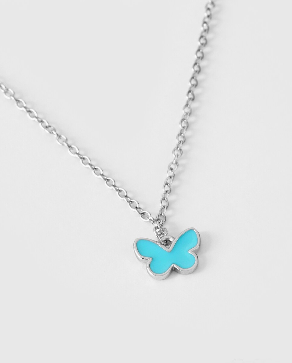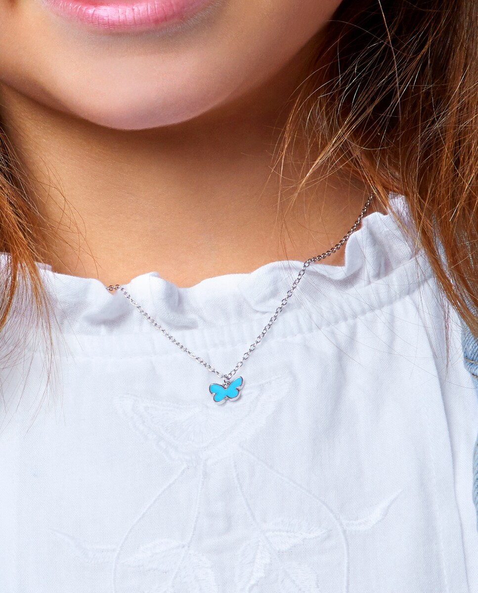 Collar niña con mariposa con esmalte azul celeste D02407/AG de plata