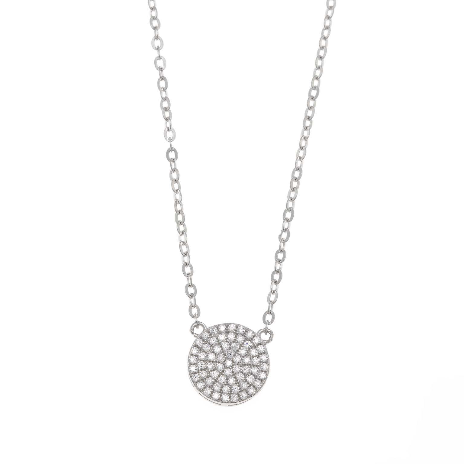 COLLAR PLATA RODIO CIRCULO PAVE CIRCONITAS BLANCAS