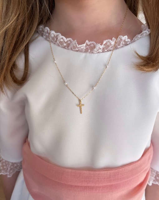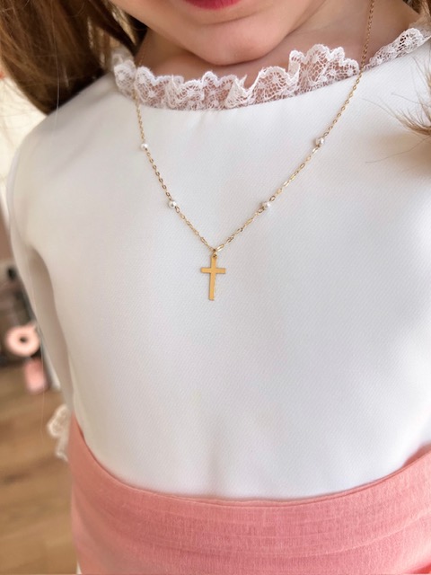 Gargantilla Oro 18kts con Cruz y perlitas