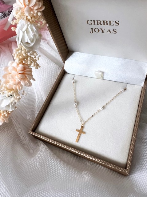 Gargantilla de Oro 18kts con perlitas y cruz.