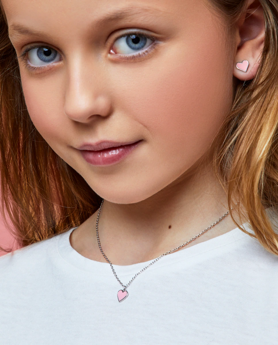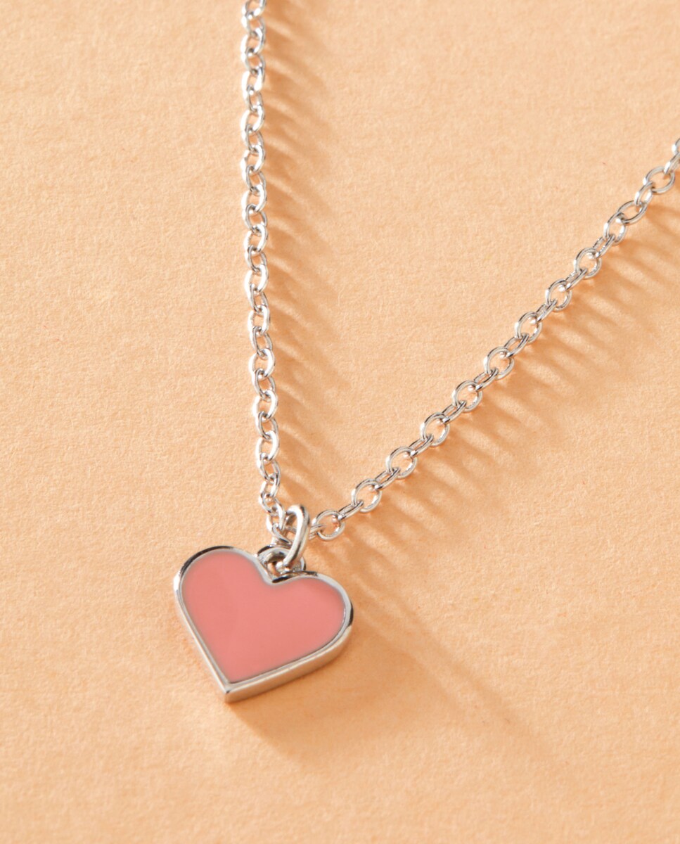 Collar con corazón, con esmalte rosa.