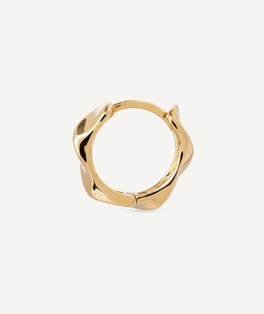 Pendientes Elisa, bañados en oro de 18 kts de la colección Básicos Torre, con cierre de aro articulado y una longitud de 15 x 3,50 mm, que elevarán cualquier look.