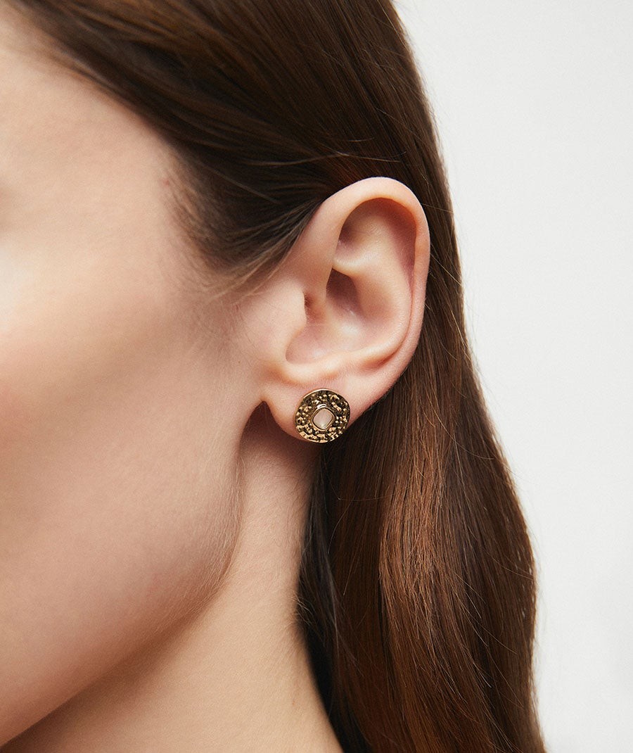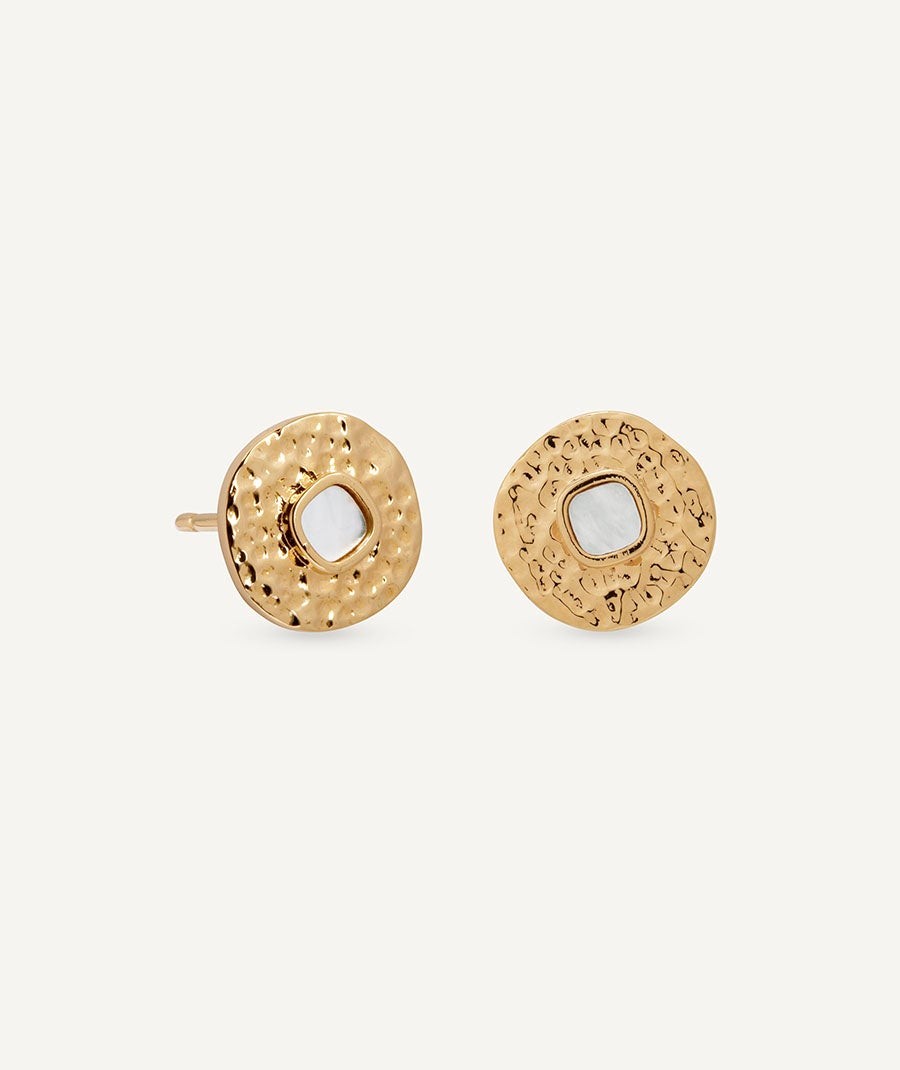 Pendientes Gleam, bañados en oro de 18 kt con lapislázuli en tonos azules. Cuentan con un cierre a presión y unas dimensiones de 12,4 x 1,6 mm. De la colección Básicos Torre, joyas atemporales, ideales para el día a día y perfectas para combinar en ocasiones especiales.