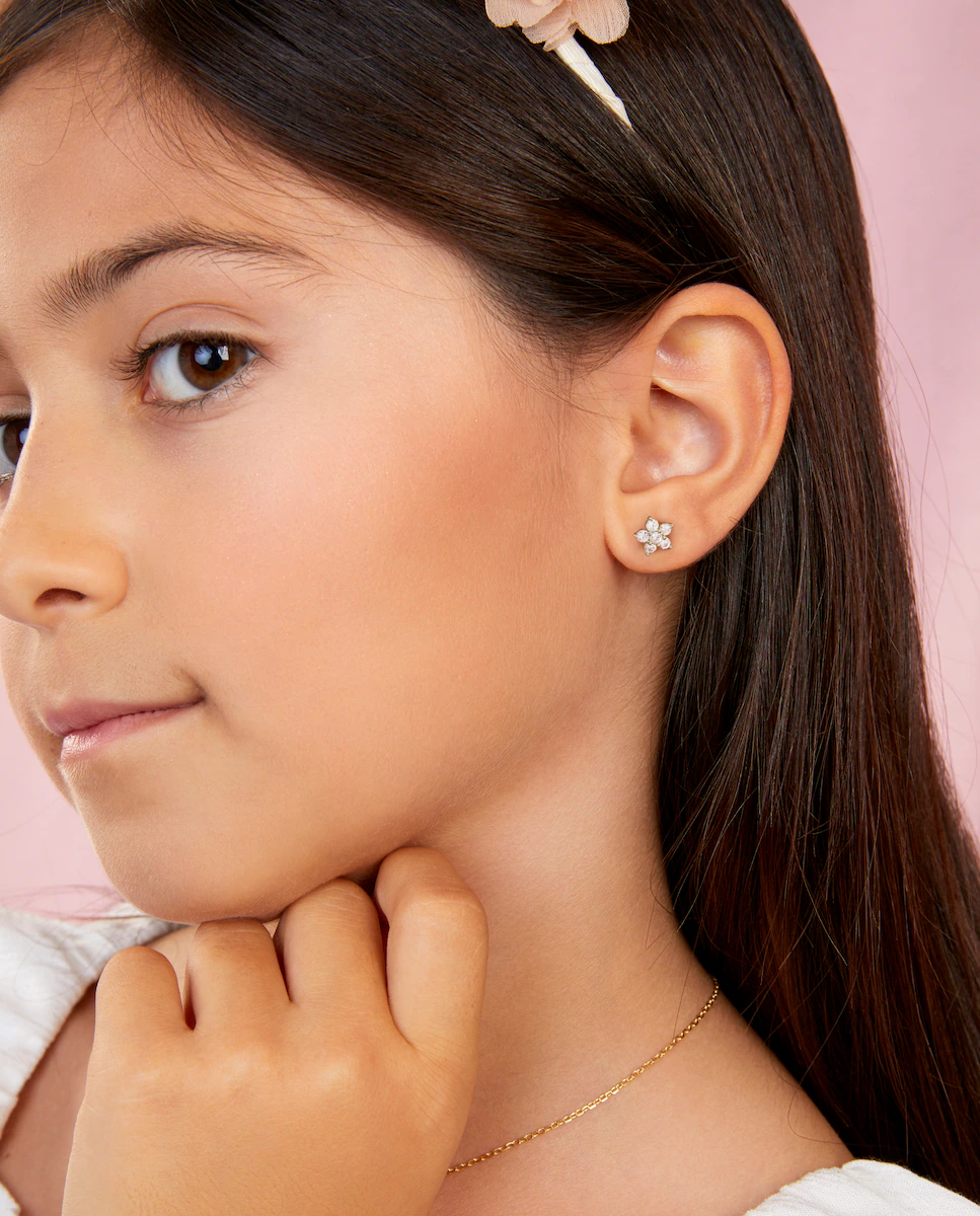 Pendientes de botón de niña D03301/AZ de plata rodiada