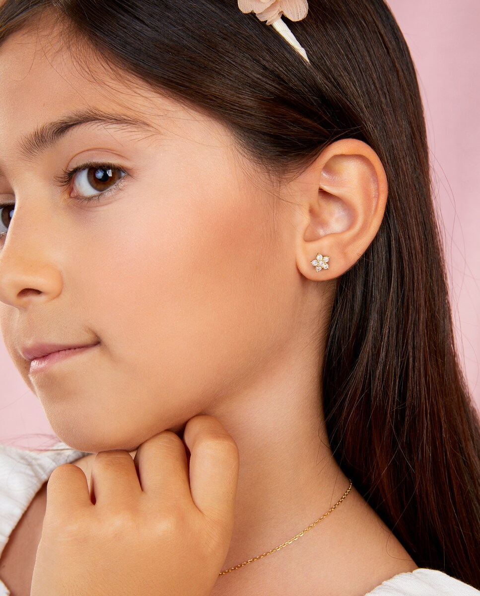 Pendientes de botón de niña D03301/BA de plata rodiada bañada el oro 18k