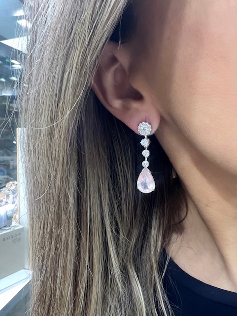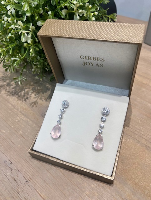 Pendientes de Plata con rosetones de Circonitas y cuarzo rosa