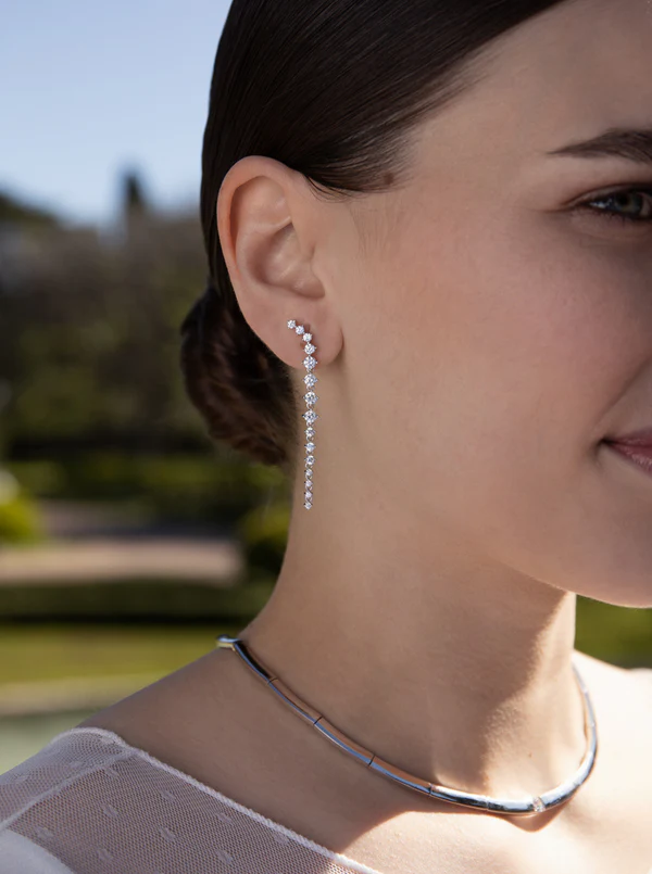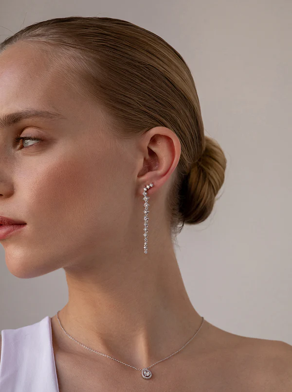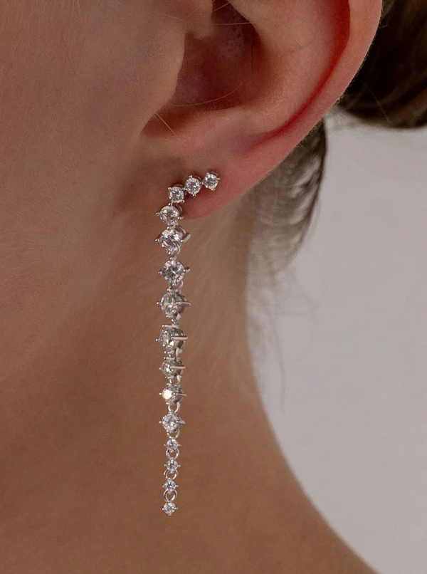 Pendientes largos de plata para mujer. Una pieza básica que no puede faltar en tu joyero. Pendientes largos de plata estilo novia formados por una tira móvil de circonitas blancas. El movimiento de esta pieza. El movimiento de esta pieza aportará un toque brillante a tu outfit. Irresistibles.