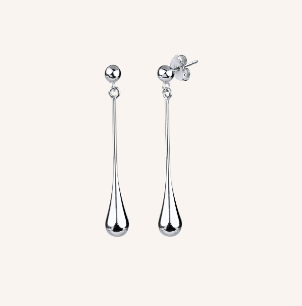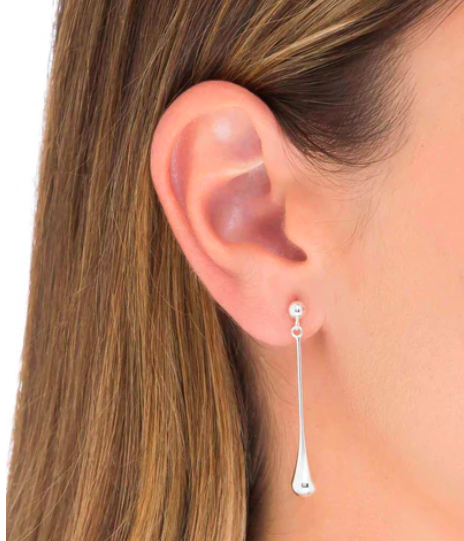 Pendientes largos Colección Essentials Chapado en Plata gotas. Cierre presión. Un básico indispensable para tus looks diarios. Varios tamaños y diseños para que encuentres el que mejor se adapte a ti.