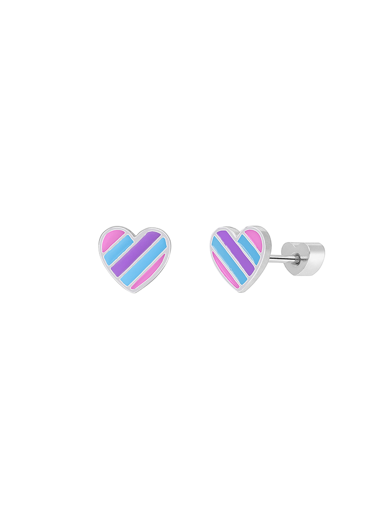 Pendientes fabricados en plata de ley 925. Diseño de corazón multicolor. Cierre rosca en forma de corazón. Certificado de autenticidad y garantía de calidad en los materiales de fabricación.