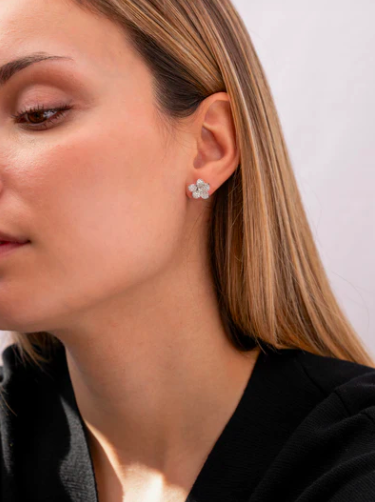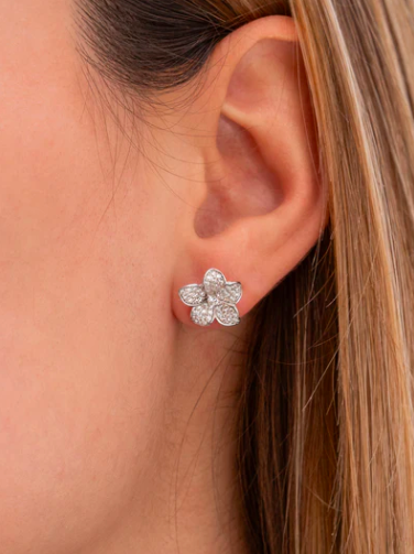 Pendientes pequeños con circonitas en forma de pequeña flor, diseñados para aportar un toque de brillo y delicadeza. Su elegante y sencillo diseño los convierte en el accesorio perfecto para añadir un toque sutil de glamour a cualquier look.