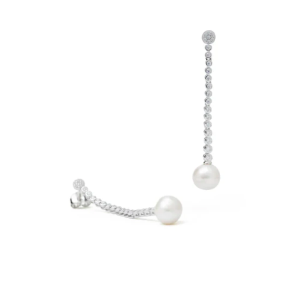 Pendientes largos para novias, con delicadas circonitas que capturan la luz y se extiende hasta finalizar en una elegante perla. Su diseño sofisticado y romántico aporta un toque de glamour y distinción, perfecto para completar el look nupcial con un brillo sutil y una gracia atemporal.