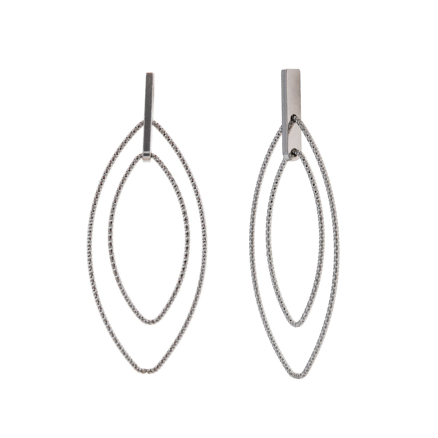 Pendientes en plata de ley con rodio y dos elipses diamantados