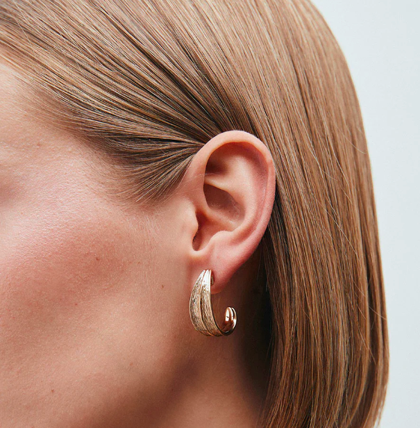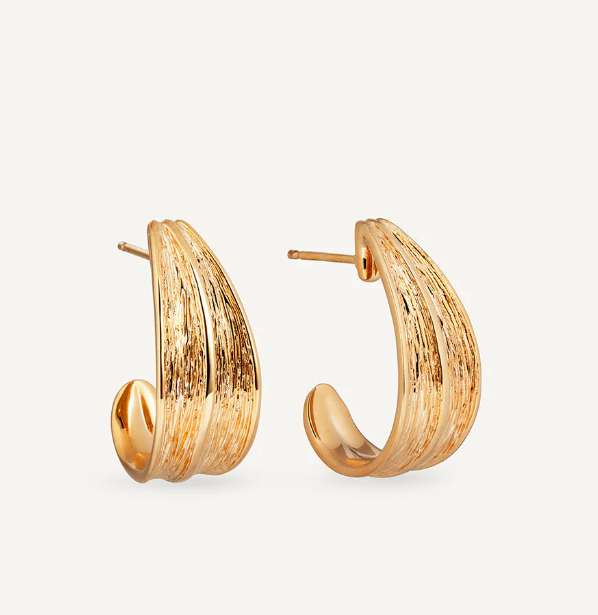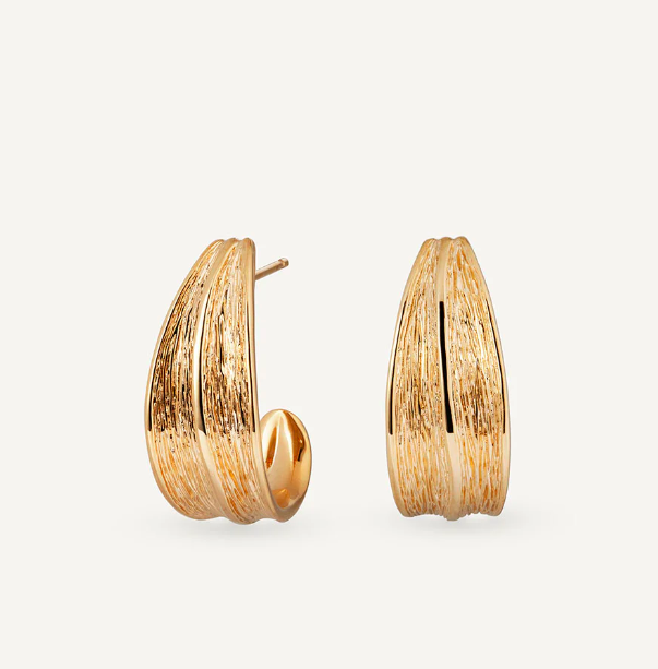 Pendientes semiluna Curve, bañados con una gruesa capa de oro macizo de 18 kt, lo que garantiza una mayor durabilidad. Tienen una medida de 25 mm y un cierre a presión. Pertenecen a la Colección Texturas, el nuevo conjunto Curve, una propuesta que nace del poder del contraste: la combinación de acabados mate y pulido espejo. Joyas que ofrecen fuerza y elegancia en una sola elección. Ideales para transformar un look sencillo en una declaración de sofisticación.