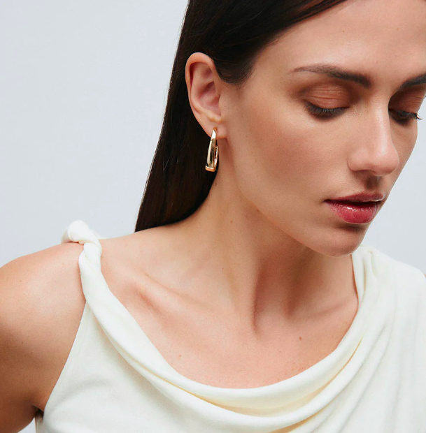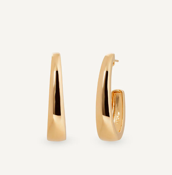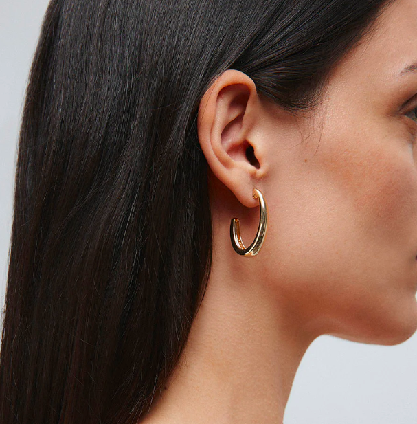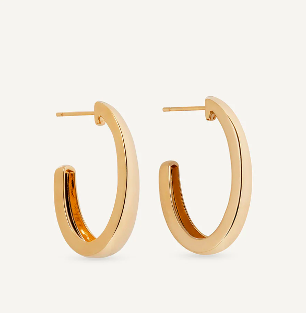 Pendientes semiluna ovales Arc lisos bañados con una gruesa capa de oro macizo de 18 kt, lo que garantiza una mayor durabilidad. Tienen una longitud de 31,8 x 7,2 mm y un cierre a presión.