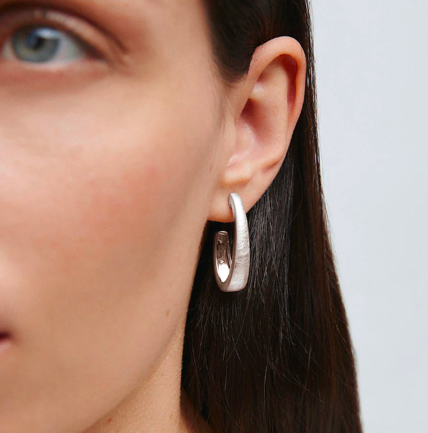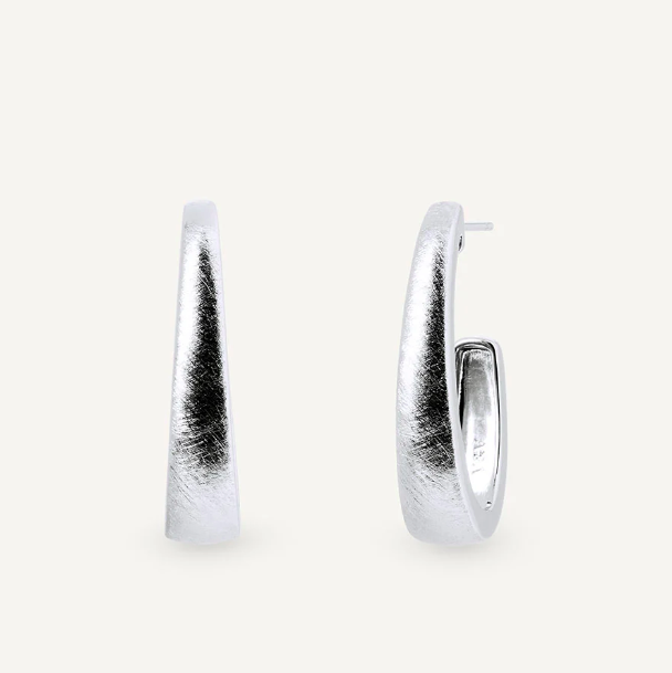 Pendientes semiluna ovales Arc Texturas bañados con una gruesa capa de Plata de ley 925, lo que garantiza una mayor durabilidad. Tienen una longitud de 31,8 x 7,2 mm y un cierre a presión.