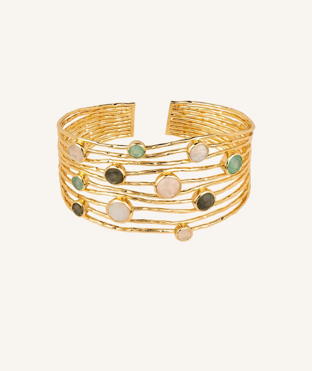 Pulsera rígida Colección Dreams acabado en Oro 18 Kts tiras Cristal y piedras pastel. Vidal & Vidal te ofrece Joyas y Accesorios perfectas para cualquier ocasión.
