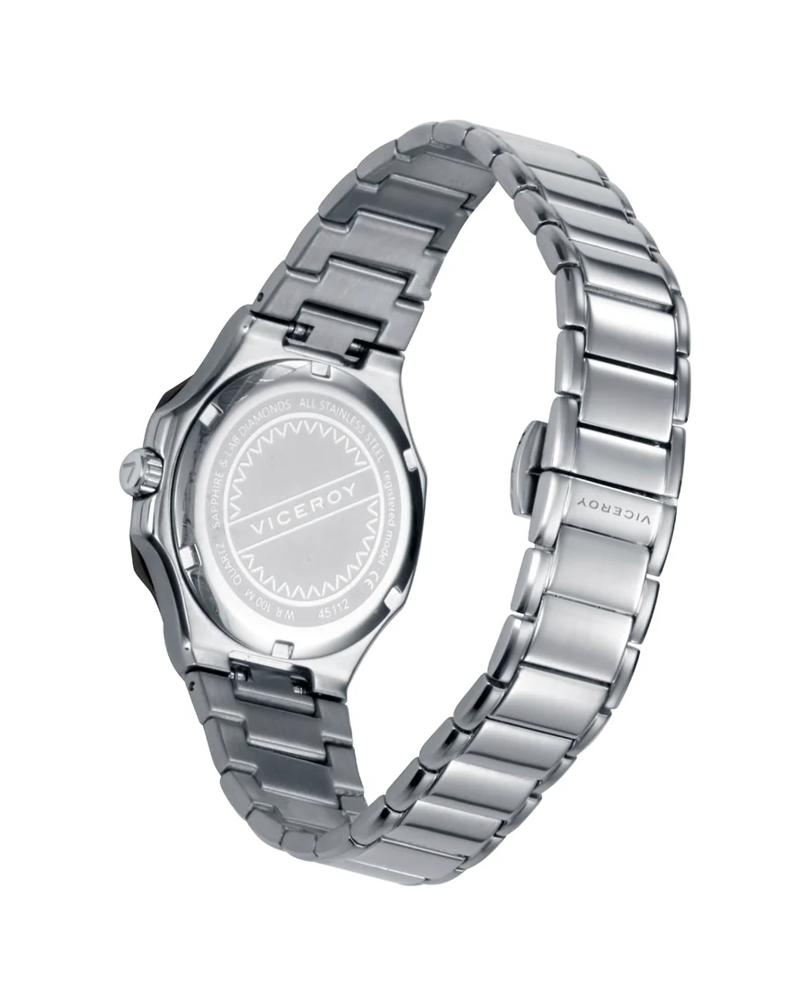 La esfera gris se realza con índices y agujas en IP rosa, creando un contraste sutil y femenino. Equipado con cristal zafiro y resistencia al agua de 10 ATM, es un reloj versátil, perfecto para acompañarte en cualquier ocasión con estilo y confianza.