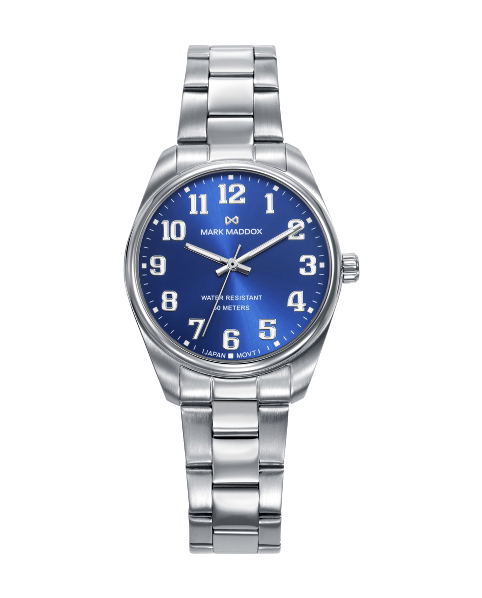 Descubre la elegancia cotidiana con este reloj de mujer de tres agujas, donde la esfera azul con números árabes se combina con un brazalete de acero pulido para un acabado sofisticado y versátil.